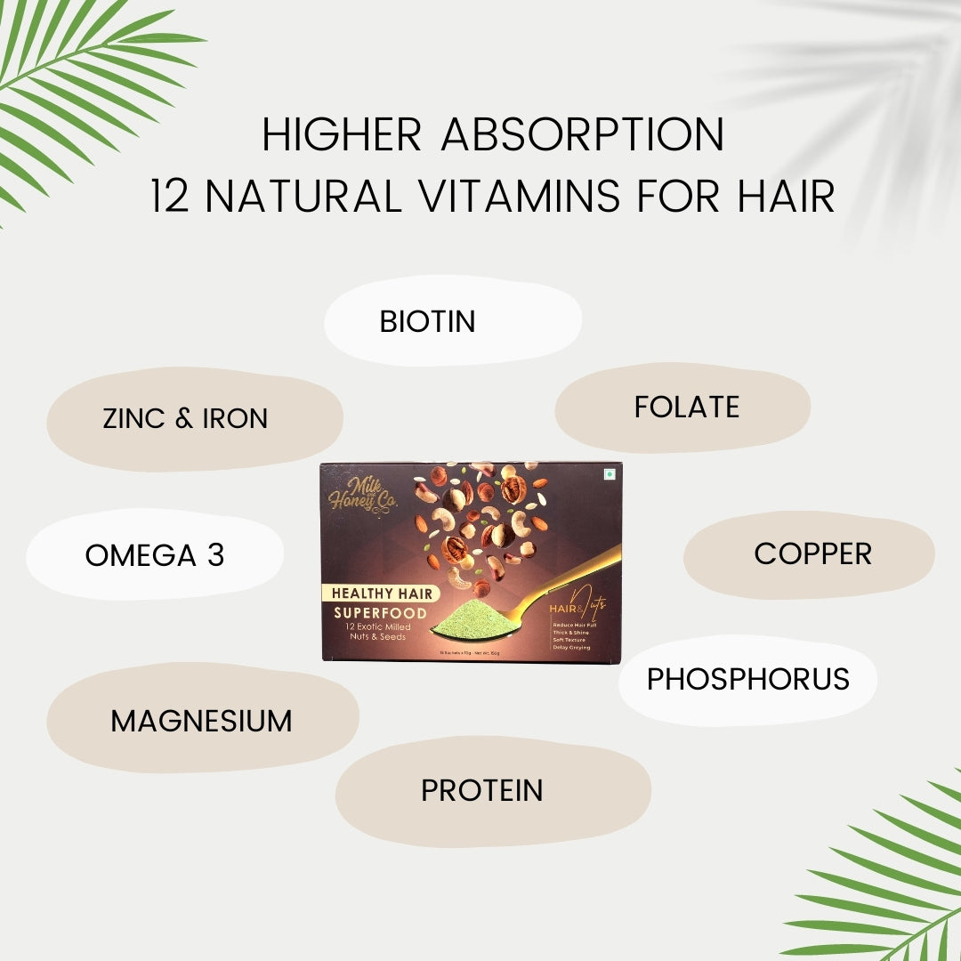 Packed with natural Biotin, Omega-3, Zinc, Magnesium, Protein & 7 other essential vitamins for hair.