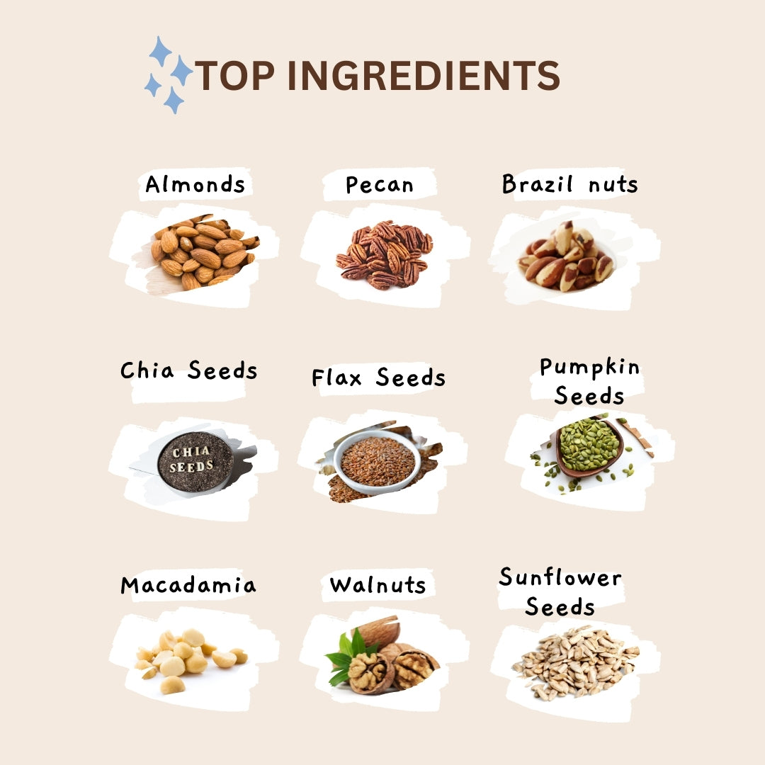 Packed with natural Omega-3, Omega-9, Omega-6, Selenium, Zinc, Protein, Linolenic Acid & 5 other essential vitamins for skin.